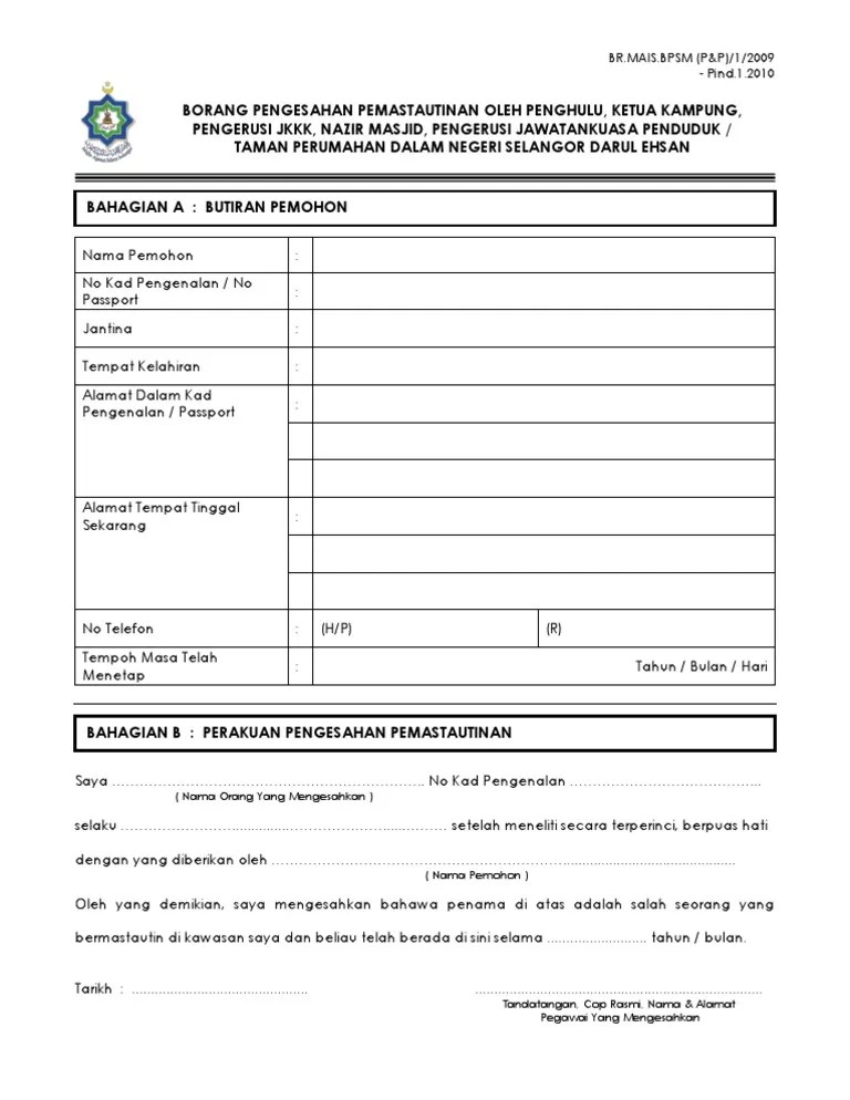 Surat pengesahan mastautin contoh surat pengesahan penduduk dari ketua kampung saya dengan ini mengesahkan bahawa apa yang dikatakan oleh . Borang pengesahan pemastautin oleh penghulu, ketua kampung, pengerusi. Saya dengan ini juga mengesahkan penama sememangnya ( bekerja sendiri / tidak . ٢٥ ذو القعدة ١٤٤٢ هـ. Surat pengesahan pendapatan ketua kampung cute766. Surat pengesahan kelahiran oleh tuai rumah ketua kampung kapitan penghulu borang spk surat pengesahan kelahiran oleh bidan borang spb salinan . 20 contoh surat pengesahan pendapatan dari jkkk. ٢ ربيع الأول ١٤٤٣ هـ. Contoh surat akuan pengesahan pendapatan. Contoh surat pengesahan penduduk dari ketua kampung. ٨ جمادى الأولى ١٤٤٣ هـ. Dlm byk2 benda surat akuan bujang ni la yg paling wt sy pening sy n mr t sama2 keje sendiri jd suratnye kena la mintak kat ketua kampung tp . Apakah skim rumah mesra rakyat rmr kediaman spnb from s.yimg permohonan surat sokongan ketua kampung. Surat pengesahan ketua kampung contoh surat pengesahan . Surat pengakuan penghulu / ketua kampong. Apakah skim rumah mesra rakyat rmr kediaman spnb from s.yimg permohonan surat sokongan ketua kampung.